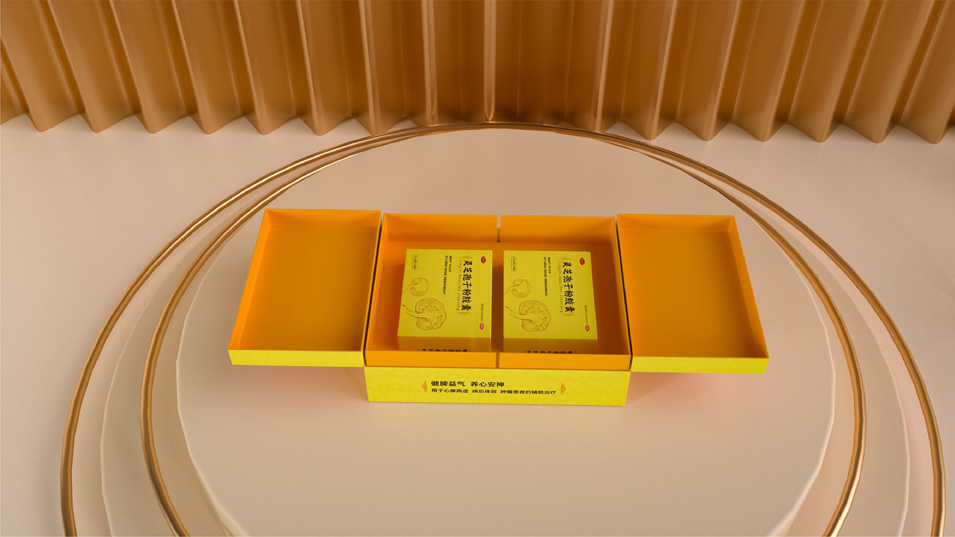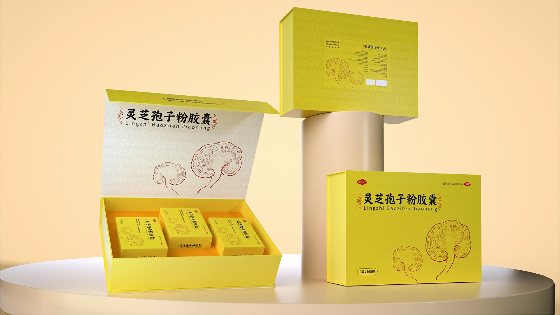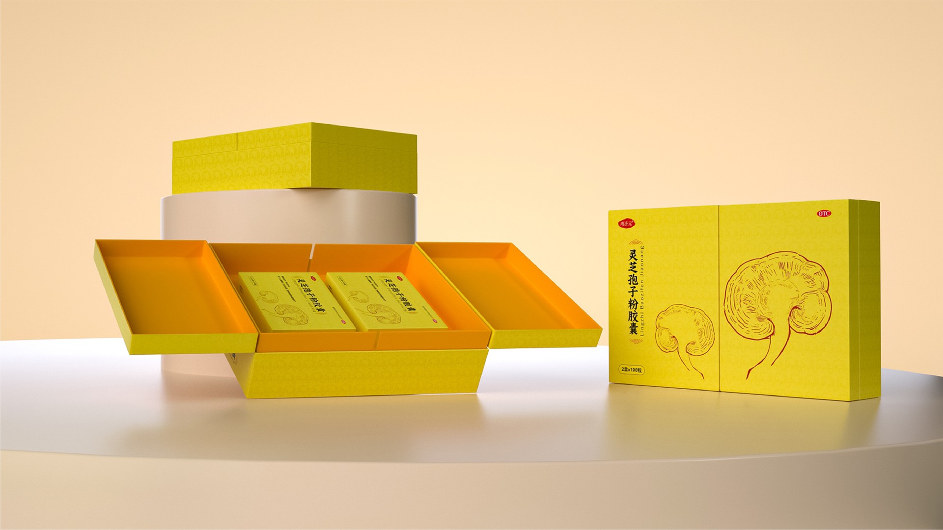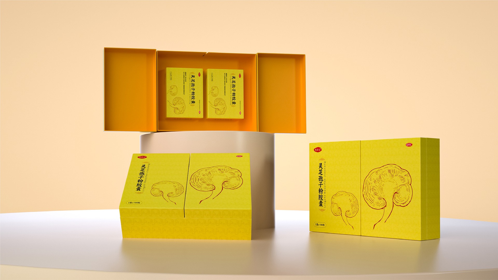 這款靈芝孢子粉膠囊的禮盒設(shè)計(jì),充分融合了現(xiàn)代審美與傳統(tǒng)文化元素,既彰顯了產(chǎn)品的專業(yè)品質(zhì),又凸顯了禮盒的高端定位。