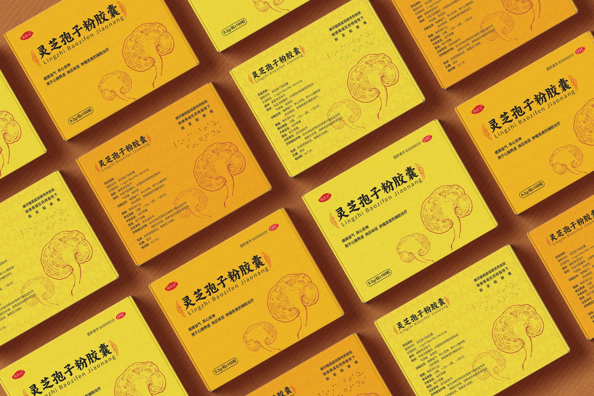 此外,禮盒設(shè)計(jì)中還巧妙地融入了植物圖案,這些圖案既代表了靈芝孢子粉膠囊的主要成分——靈芝,又象征著健康、長(zhǎng)壽的美好寓意。這樣的設(shè)計(jì)不僅使禮盒更具藝術(shù)感,還加深了消費(fèi)者對(duì)產(chǎn)品的認(rèn)知與好感。